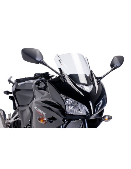 La bulle racing pour HONDA CBR500R 13 - 15 , est issue de la compétition et grâce à sa double courbure diminuera de façon significatif la pression de l air sur le casque.