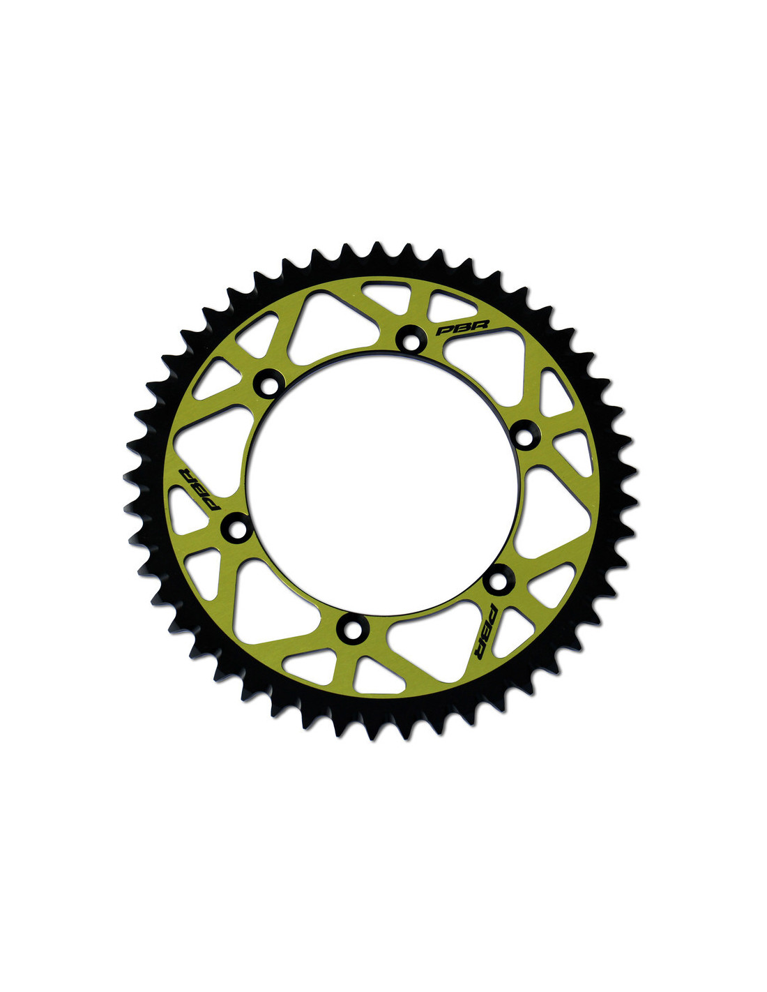 Couronne Twin color PBR Usinée avec une grande précision dans un aluminium 7075 T6 très léger et très résistant.Profil dessiné pour les dents qui permet de faciliter l’évacuation de la boue et réduit au maximum les pertes de puissance dûes à la friction entre la chaîne et la couronne. L’anodisation durcit la matière en surface et améliore aussi l’esthétique. Des alésages sont réalisés sur la couronne à des endroits stratégiques afin d’alléger la pièce sans diminuer la résistance. Cette couronne vous apportera un gain en poids, en puissance, en résistance et en longévité. Un atout pour le MX, SX ou l’enduro.