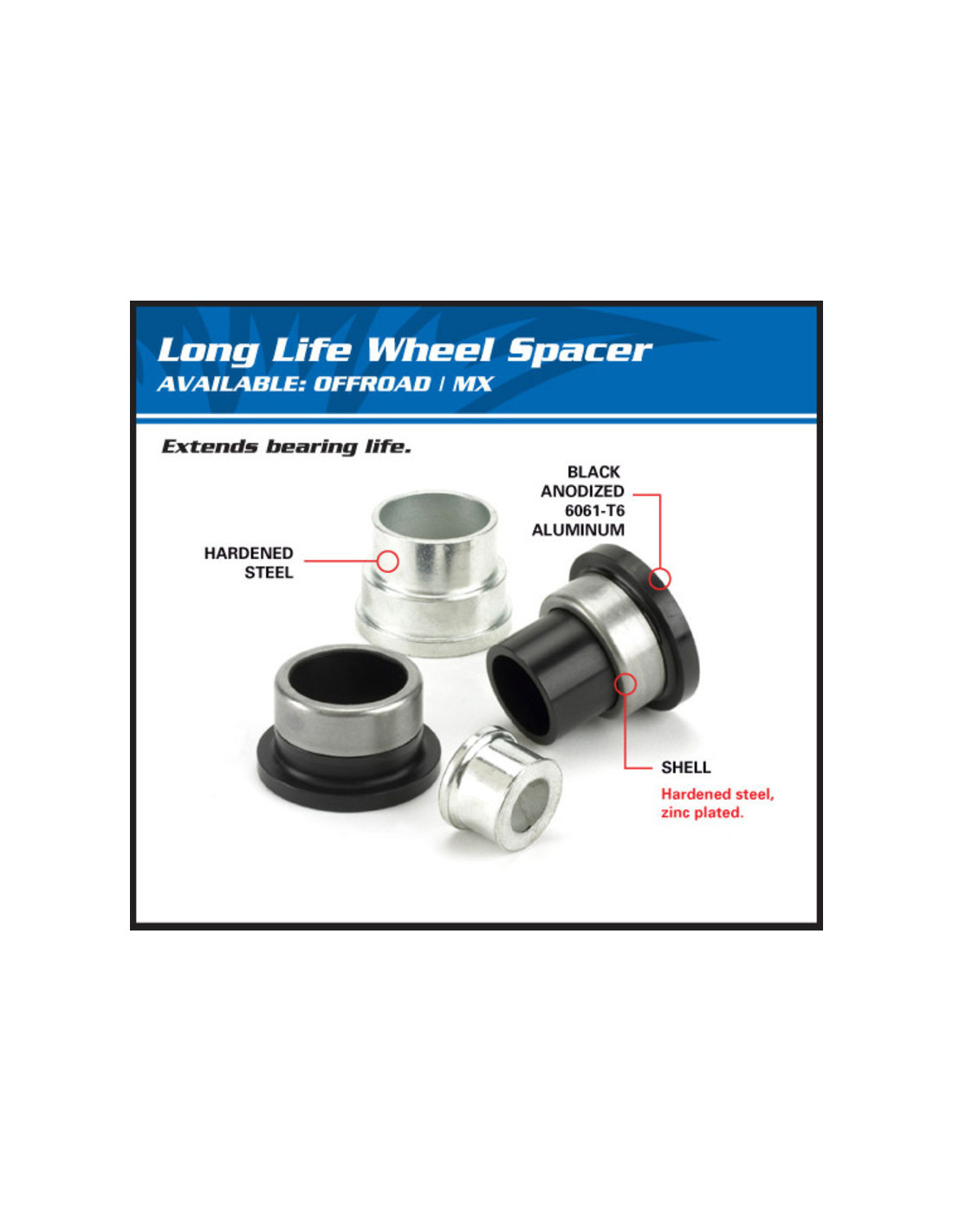 Ce kit All Balls est composé des deux entretoises de roues et permet de reconditionner efficacement ces éléments de contact au sol.  Fabriquées à partir d’aluminium anodisé rigide Bague en acier trempéGarantie d’une longévité accrue