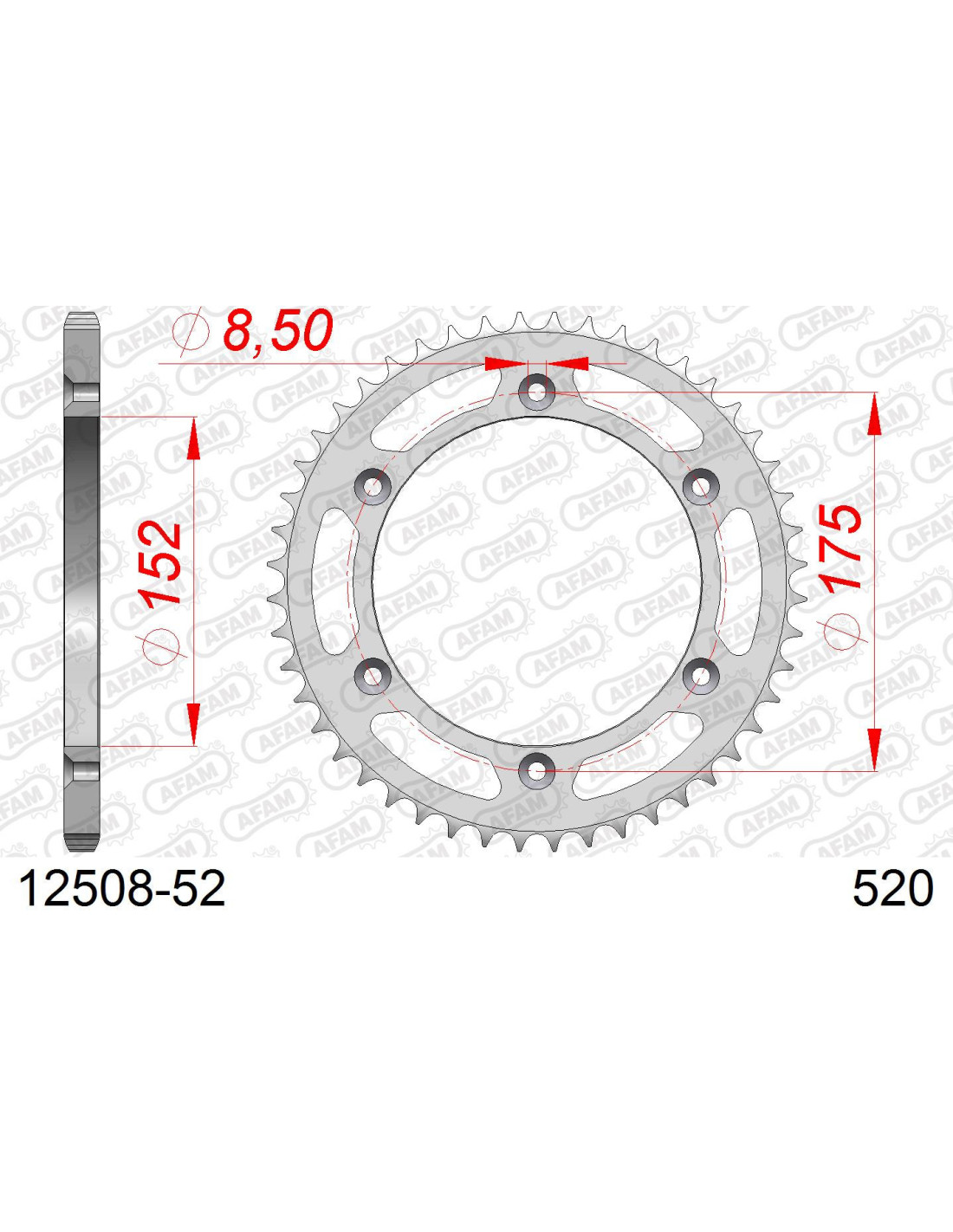 Kit chaine AFAM ACIER au pas de 520 démultiplication d'origine 13x52 longueur de chaine 110 maillons.
