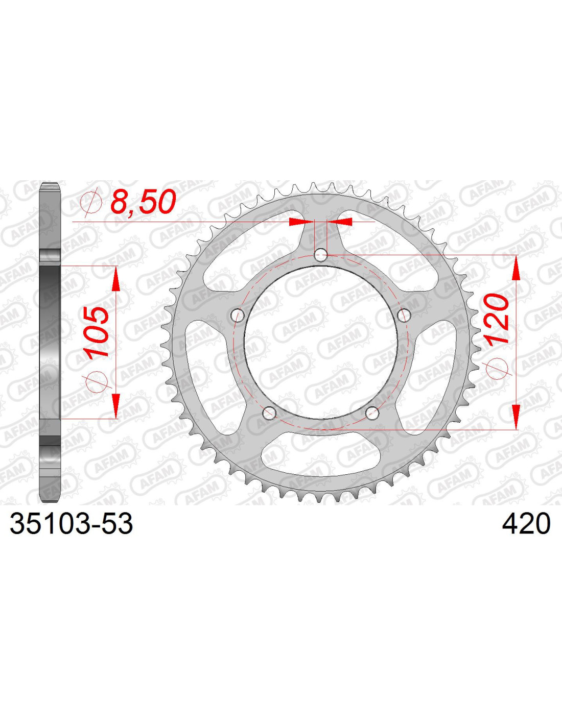 Kit chaine AFAM ACIER au pas de 420 démultiplication d'origine 11x53 longueur de chaine 128 maillons.