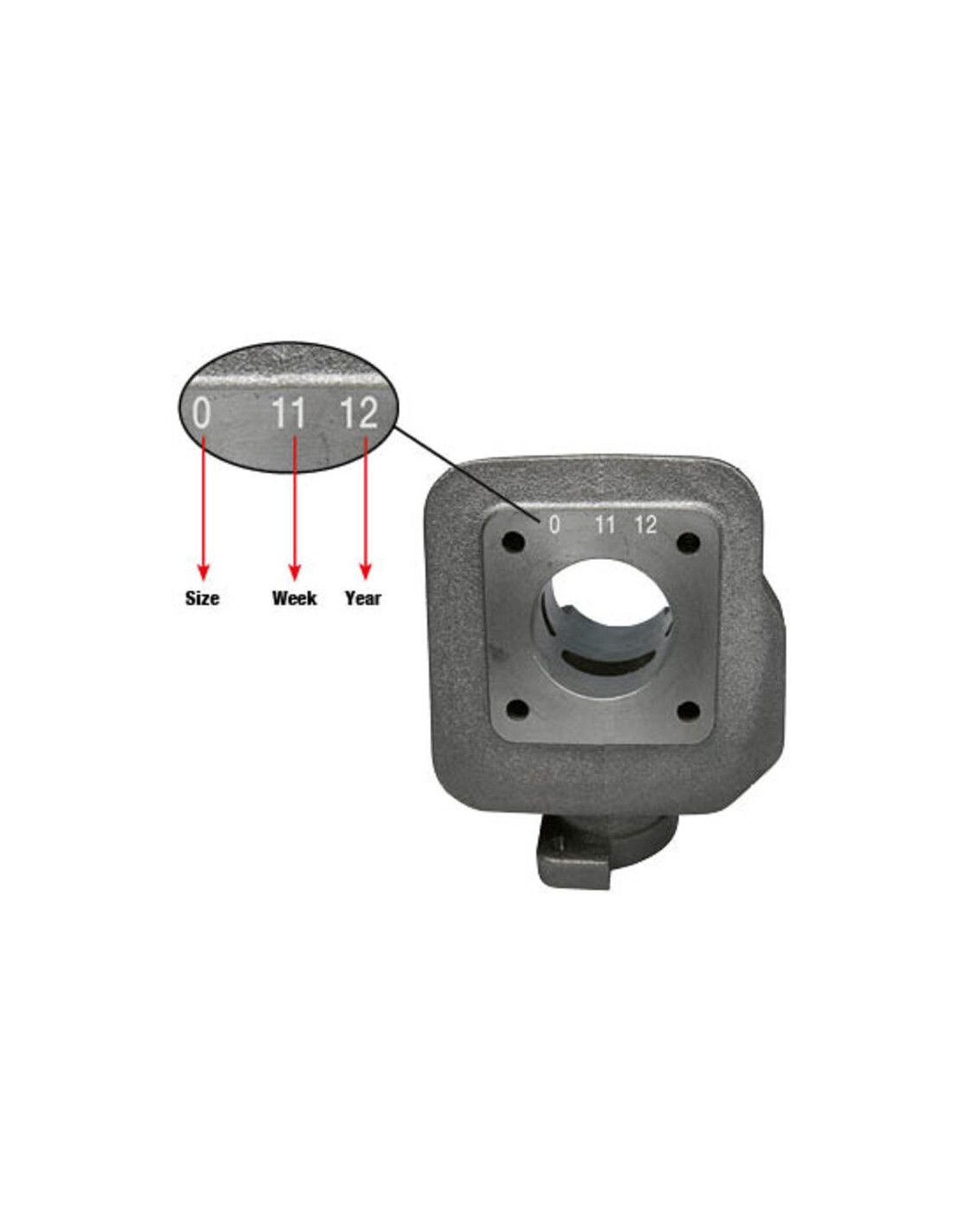 Tous les cylindres Malossi sont sélectionnés en fonction de leur taille et portent une marque indiquant leur taille, le numéro de la semaine et l'année.