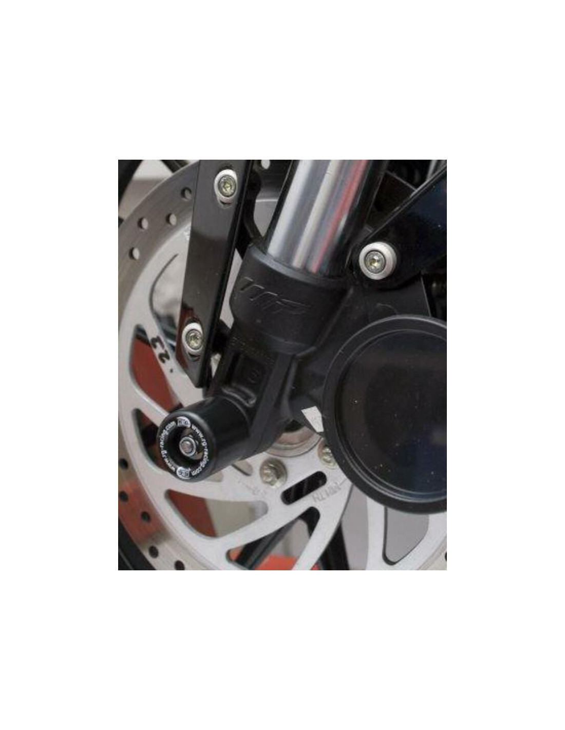 La protection de fourche R&G Racing permet de prévenir les dommages aux fourches avant, aux bas de fourche et aux étriers de frein en cas de glissade ou de chute.