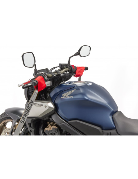 Buckle-Up de Acebikes, sangle de qualité avec protection qui vous permettra de transporter votre moto sans crainte, facilement et en sécurité.