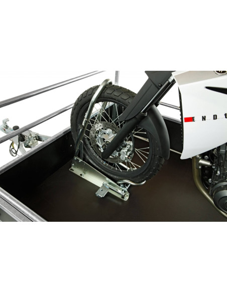 Le bloque roue SteadyStand Cross galvanisé d'Acebikes a été spécialement développé pour les motos tout terrain.