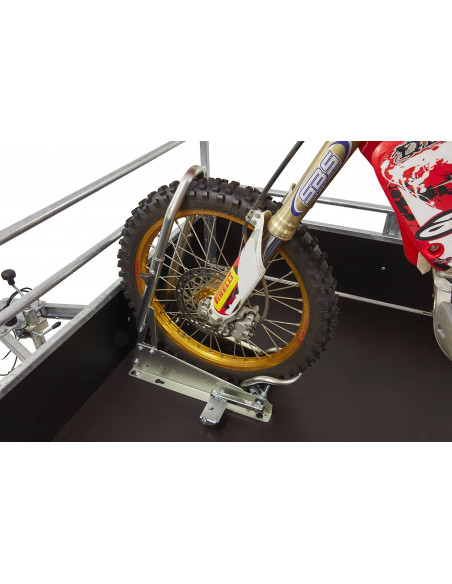 Le bloque roue SteadyStand Cross galvanisé d’Acebikes a été spécialement développé pour les motos tout terrain.