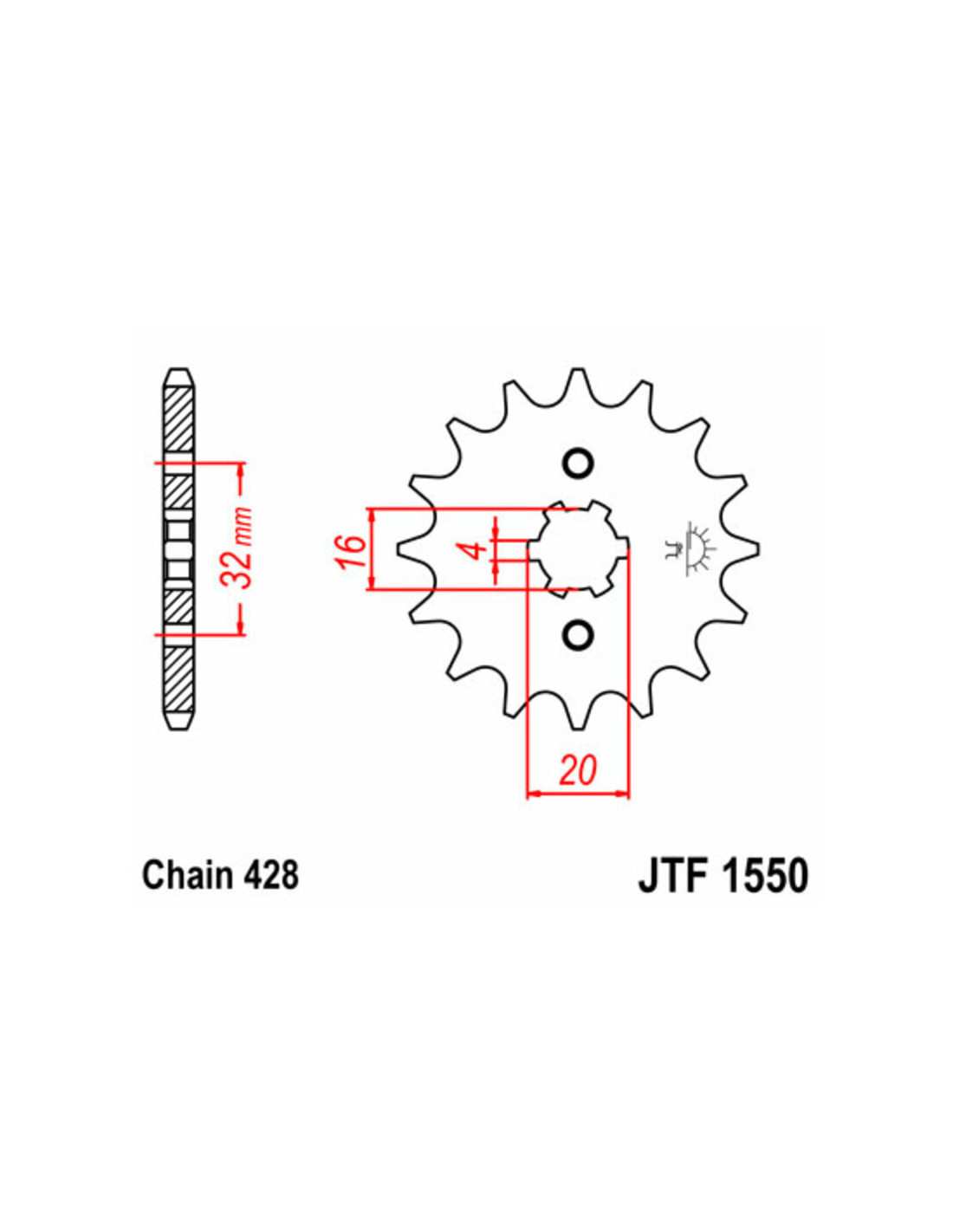Kit chaîne JT/JT 428HDR 15/52 standard - couronne standard