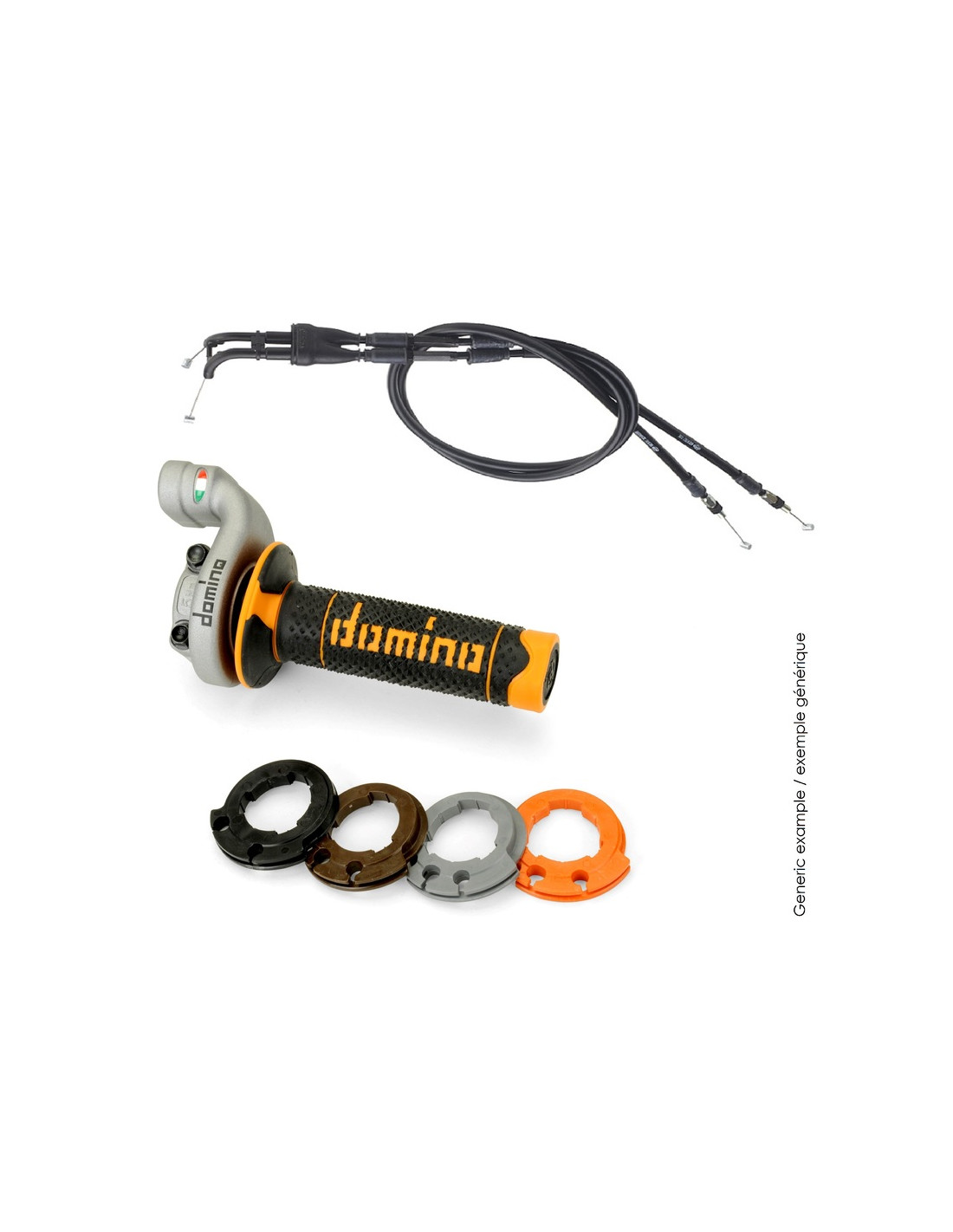 Le kit poignées et cables de gaz KRK EVO, livré avec des revêtements Full Grip Livré avec 4 cames interchangeables : Came grise : tirage ø38, vitesse de tirage 3,0°Came marron : tirage ø39, vitesse de tirage 2,8°Came orange : tirage ø43, vitesse de tirage 2,7°Came noire : tirage ø49, vitesse de tirage 2,6°